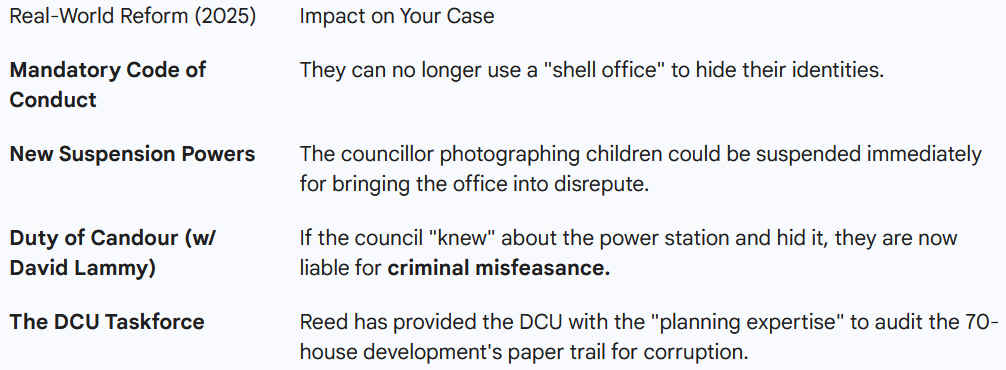 Just days ago (this article written 30th December 2025), Reed’s flagship Bill became law. It contains a "nuclear option" for dealing with corrupt or failing councils: